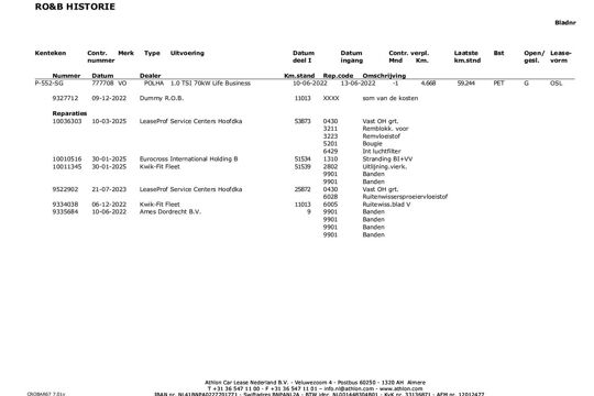 Volledige onderhoudshistorie beschikbaar